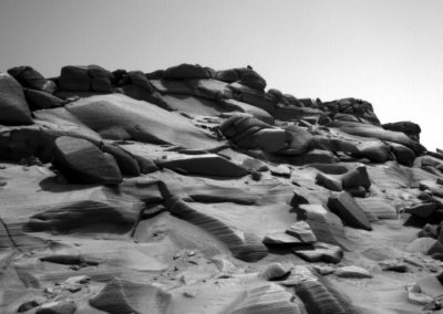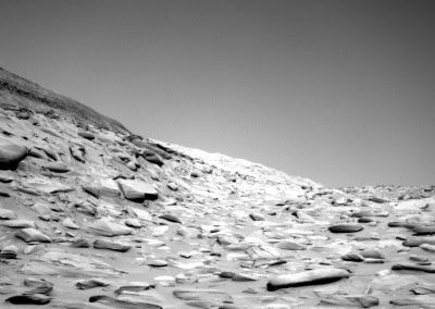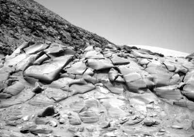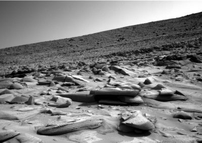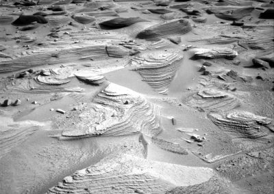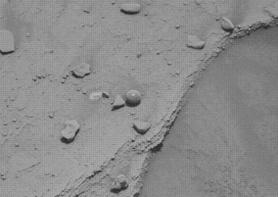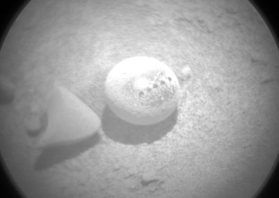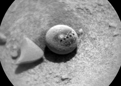 Drill holes sampling oddly rounded stone on Mars. Stones like this are typically found in rivers on Earth, beaten by streams and water. Wind erosion tends to look carved instead, so this is interesting.